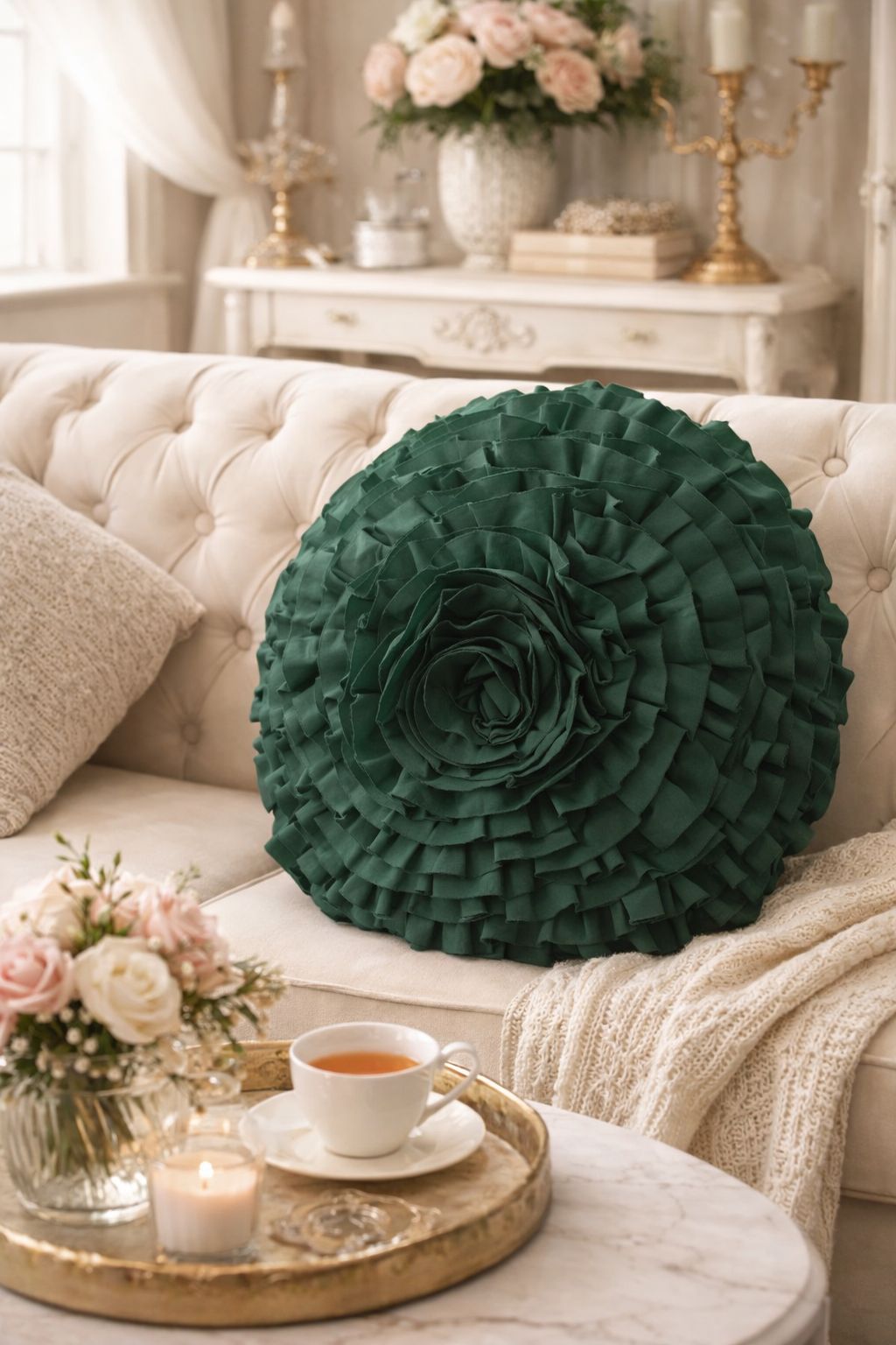 Raffinato cuscino in stile Shabby Chic, dalle colorazioni tenui in tinta unita, adatto per divano e letto.