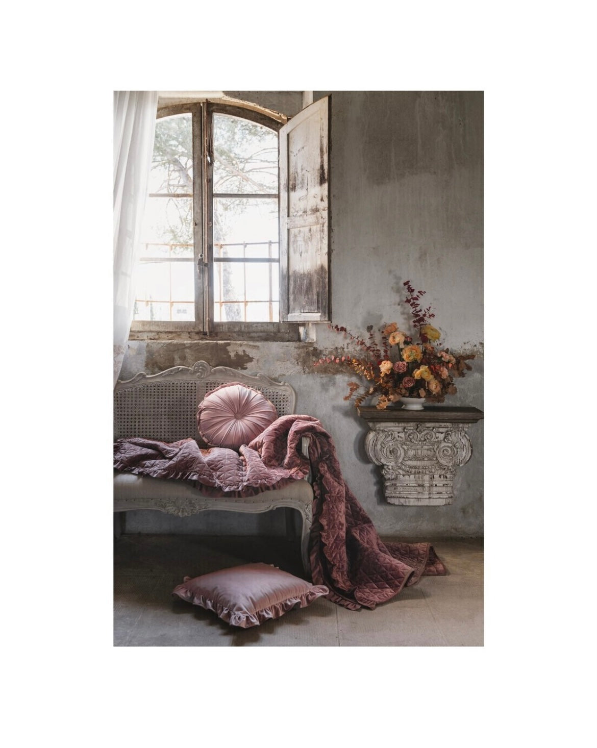 La trapunta viene inviata completa di due federe sempre in velluto, realizzate con lo stesso tipo di lavorazione, e una borsa in velluto per poterla riporre quando non la userete.